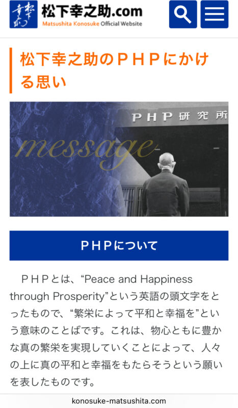 今になって、PHP って何だろう?と思い調べてみると、松下さんのオフィシャル ウェブサイトにこう書かれていた。
